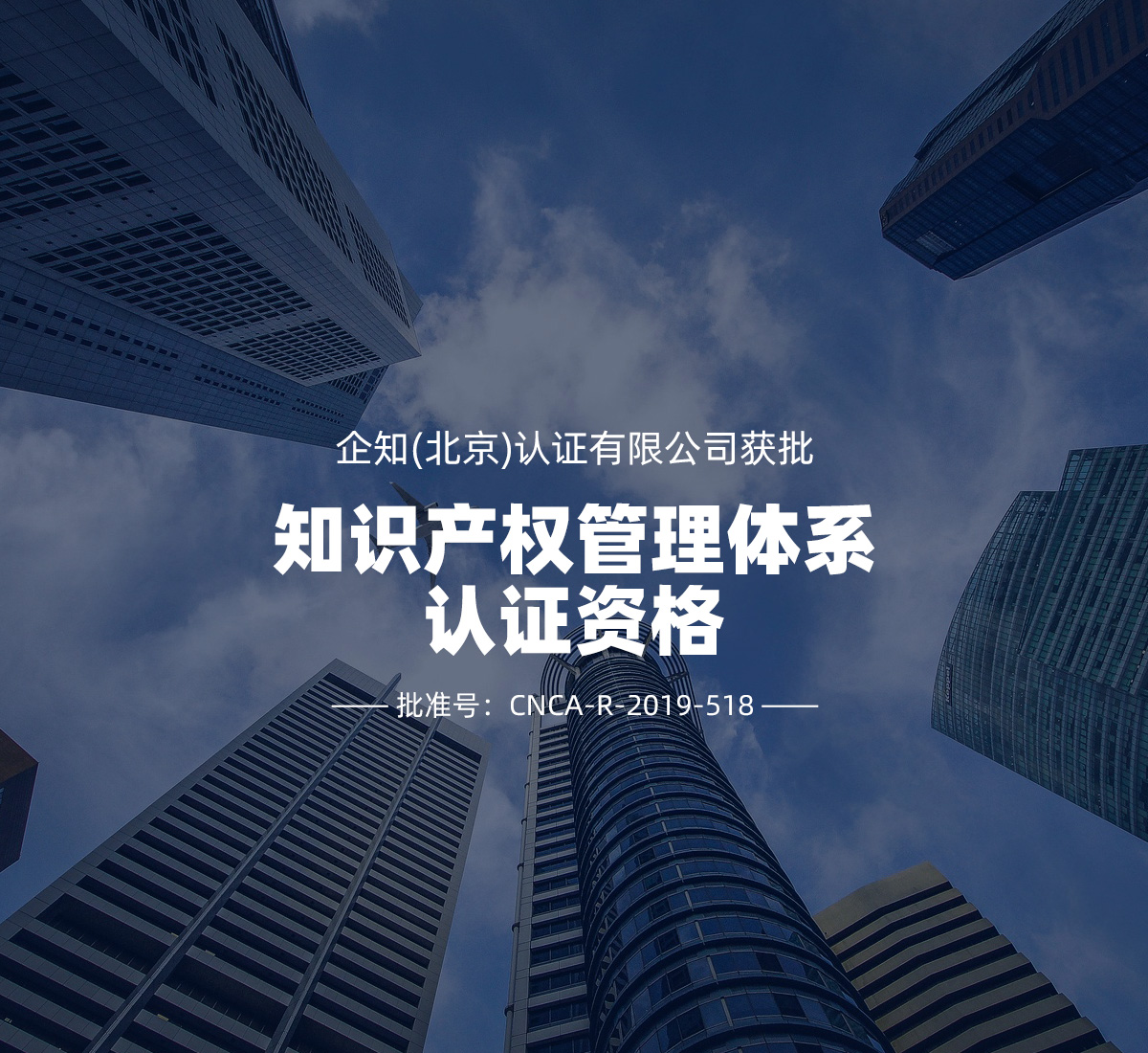 企知(北京)認證有限公司(簡稱“企知認證”)成立于2019年1月,是經國家認證認可監督管理委員會(CNCA)批準成立的知識產權認證機構。